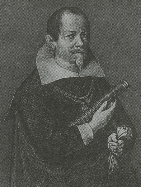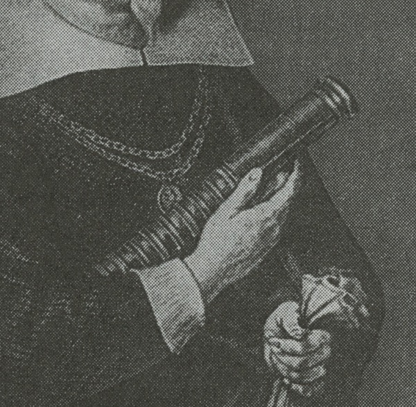 Portrait of Johannes Weisel, an optician in Augsburg in 1660 at the age of 77. Weisel cradles a refracting telescope in his right hand.