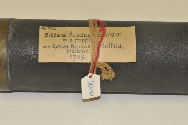 This telescope is nearly identical to 03/0178, also by Baillou, but more worn. The inscriptions in French are difficult to make out, but matches the inscriptions on 03/0178 with few variations.