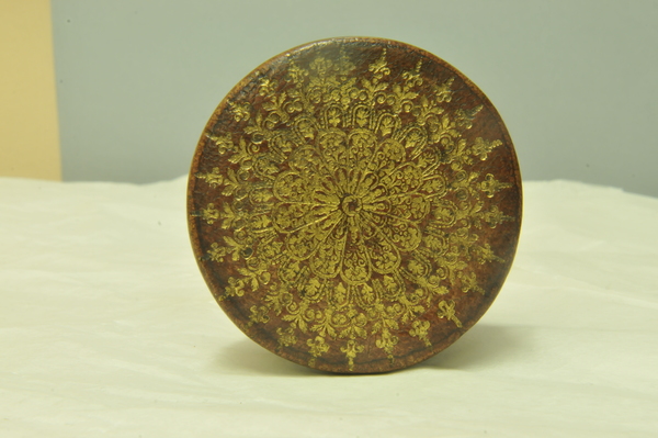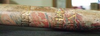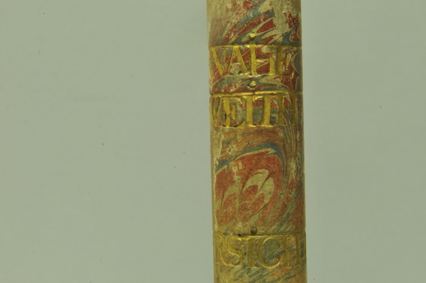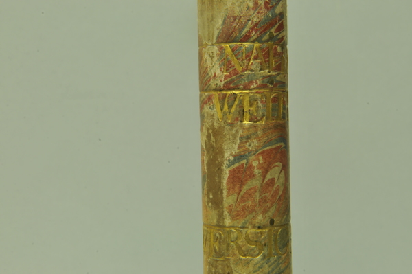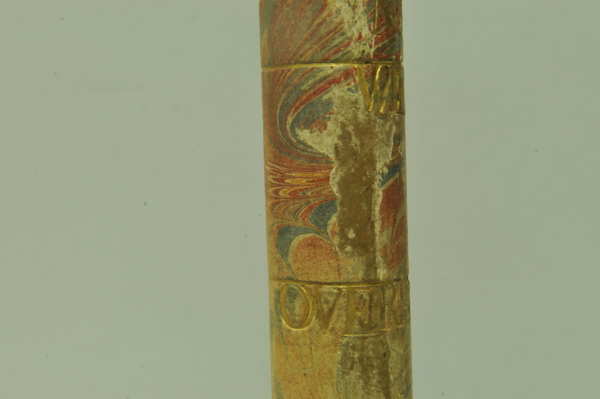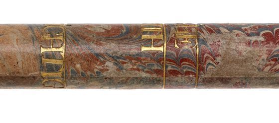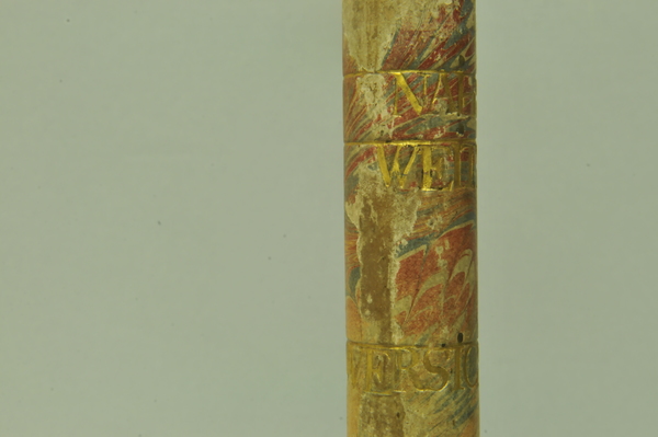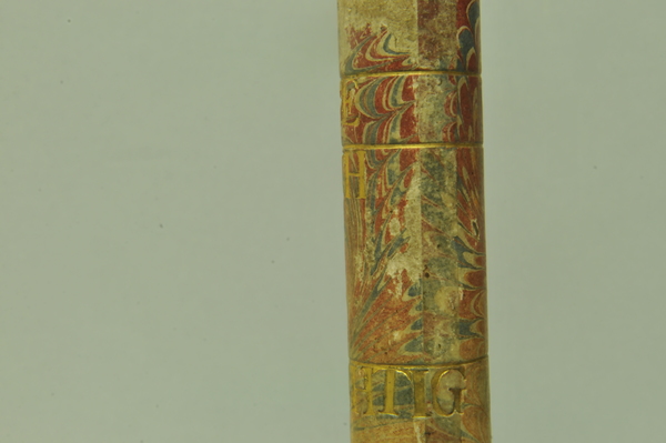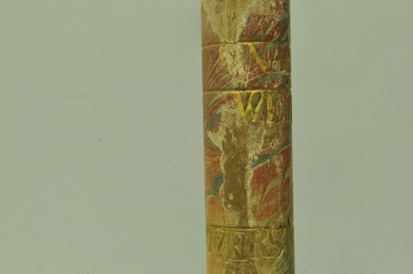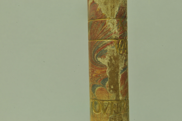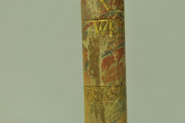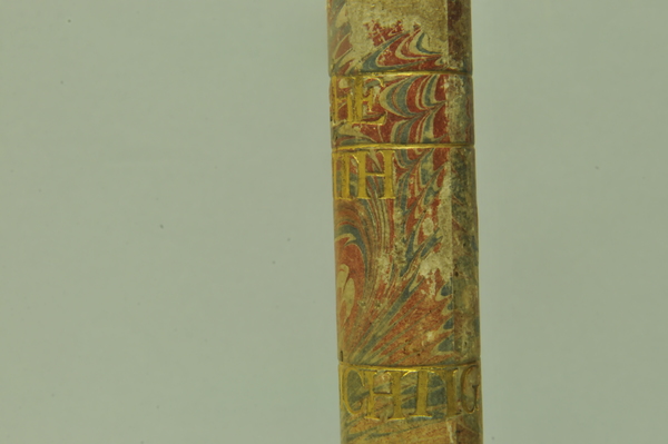 Materials: wood, gold tooling, glass, brass, vellum