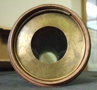 Brass ocular diaphragm is stopped from 47.6 mm down to 18.0 mm. Thickness ranges from 0.15 - 0.21 mm.