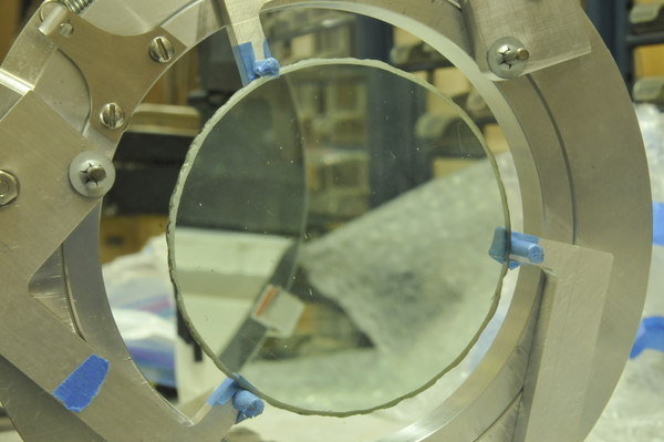 | Lens 1 notes: Direct focal length measurement results from illumination of entire lens rather than stopped down via diaphragm. Lenses look original. Objective and eyepiece have very different color, with a greenish hue to the objective. Brass objective diaphragm has outer diameter of 79.4 mm, inner diameter of 39 - 40 mm. Diaphragm thickness ranges from .49 to .64 mm, indicating it is likely original. Brass looks very different on the two diaphragms, with lots of texture on objective, and plain on ocular. Split brass ring holds each lens in place: objective ring is 2.5mm thick, ocular ring 2.1 mm. Objective thickness ranges from 5.1 mm in middle to 3.4 mm at edge. Both lenses are polished but not smooth. Objective is biconvex, with one side nearly plano. Ronchi test of entire lens shows it is well-made. Data are reliable | |||||||||||
