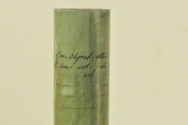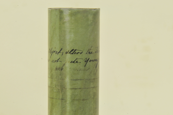Notes that the same length is not used for young and old. Signed on lens with date. Note that signature goes clockwise, rather than the usual counterclockwise. Part of signature intrudes into objective that is usable. Not significant on this kind of lens.