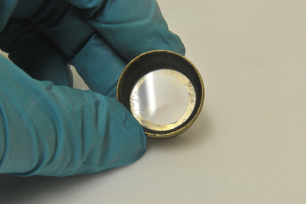 Eyepiece insert is made of wood, with brass fittings.