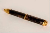 "English telescope. Main tube covered with tortoiseshell. Four drawtubes covered with green marbled leather, richly tooled with floral motifs, stars and crescents (almost identical to the preceding telescope). Brass curved fittings and protective slides. Unsigned. Presumably mid-eighteenth century" (Louwman and Zuidervaart, 2013).
